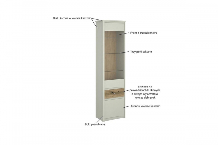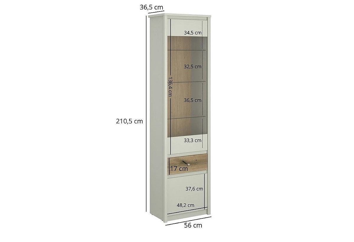 висока витрина WIT 1D1W1S - размери: ш/в/д- 56/ 210,5 / 36,5 см.