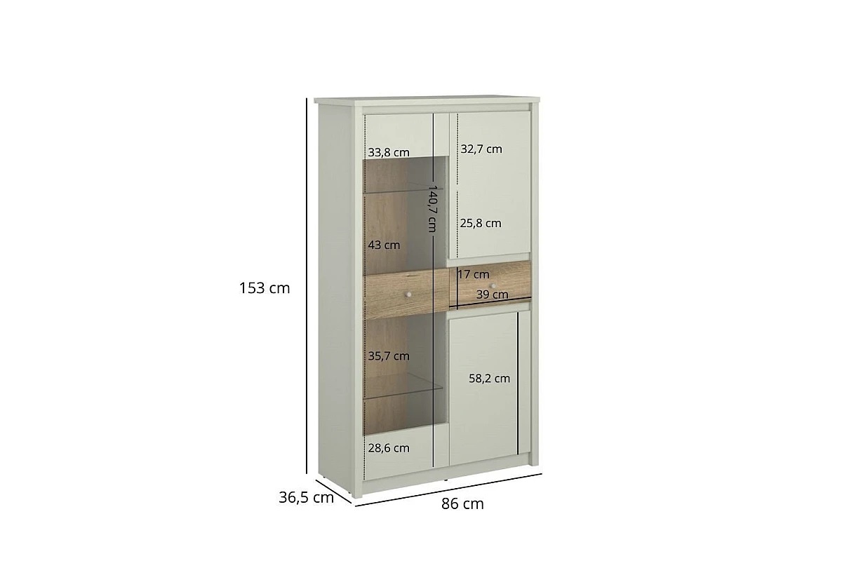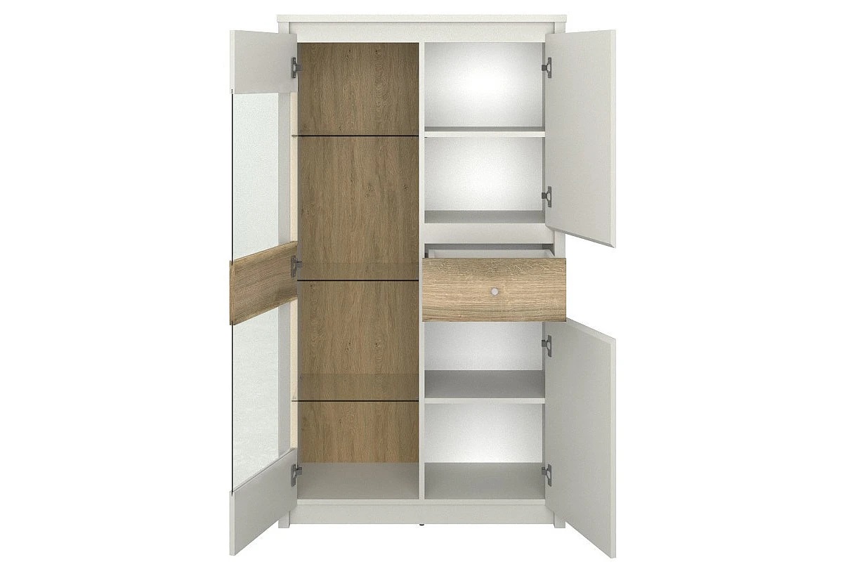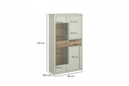 Ниска витрина с две врати и чекмедже KARIN WIT 2D1W1S - размери: ш/в/д- 96/ 153/ 36,5 см.