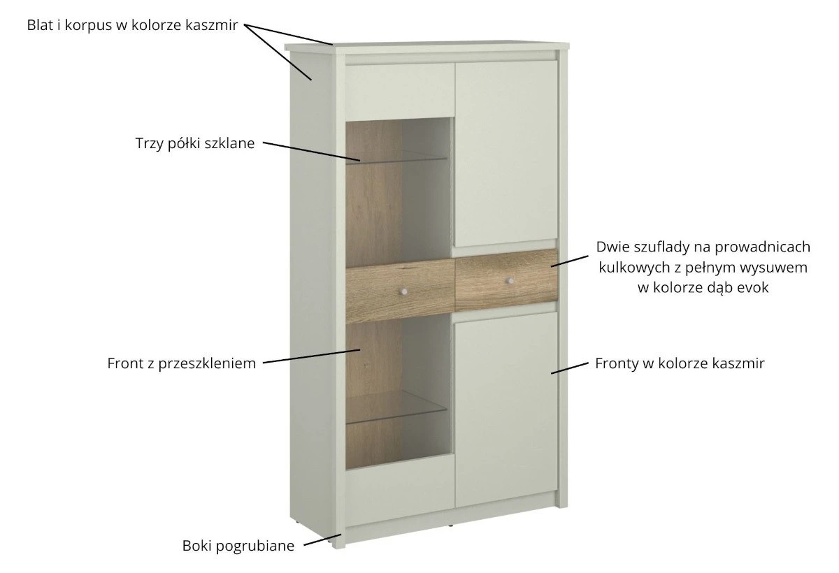 Ниска витрина с две врати и чекмедже WIT 2D1W1S