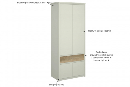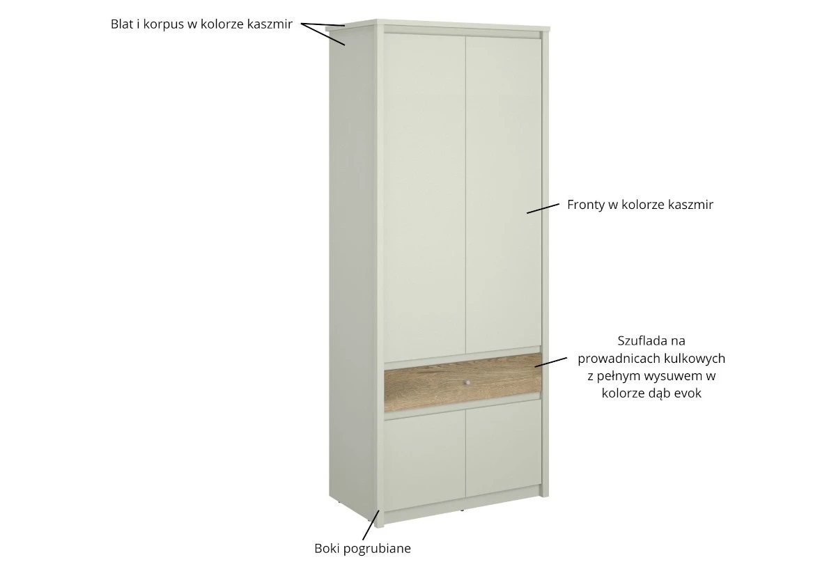2 кр.гардероб с чекмедже KARIN SZF 4D1S - размери: ш/в/д- 87/ 210,5 / 50,5 см.