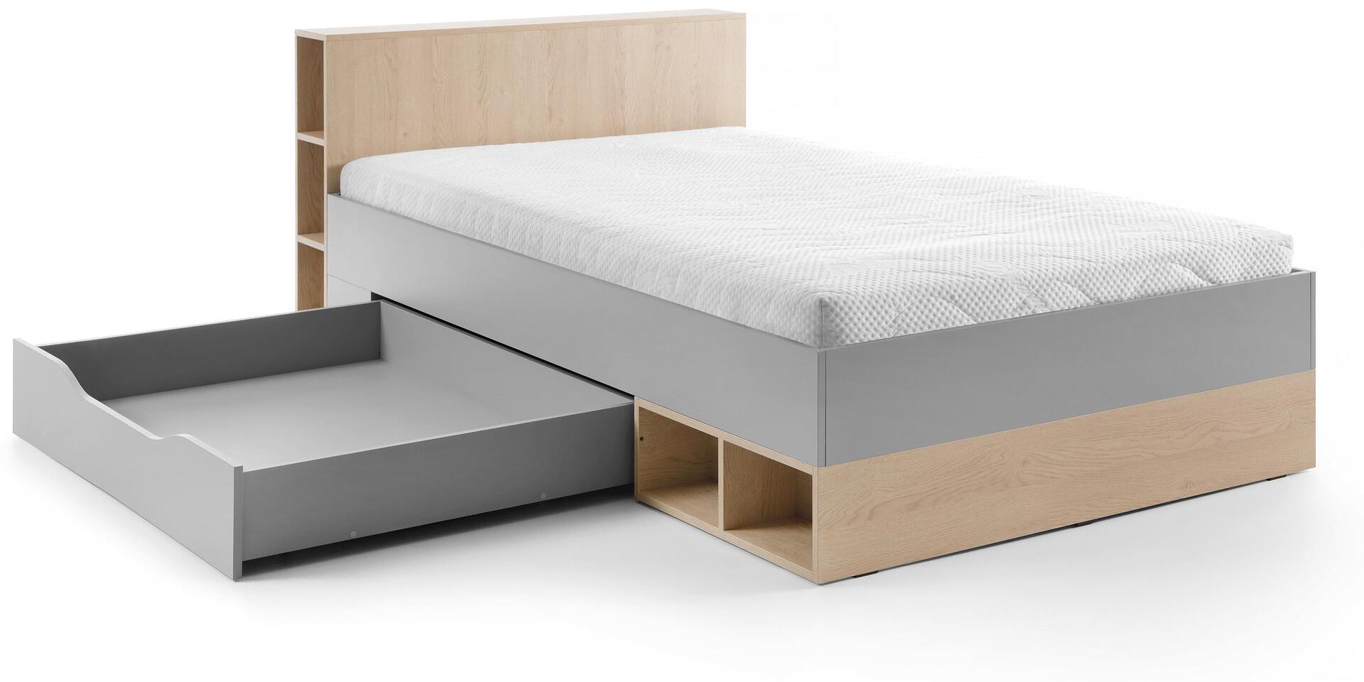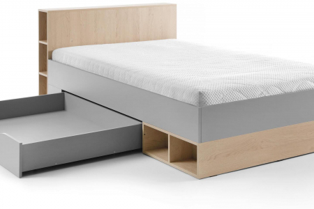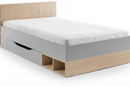 Легло с чекмедже и ниши за матрак с размер 90/200 см с размери: 124/80/224 см с включена подматрачна рамка. Без включен матрак.