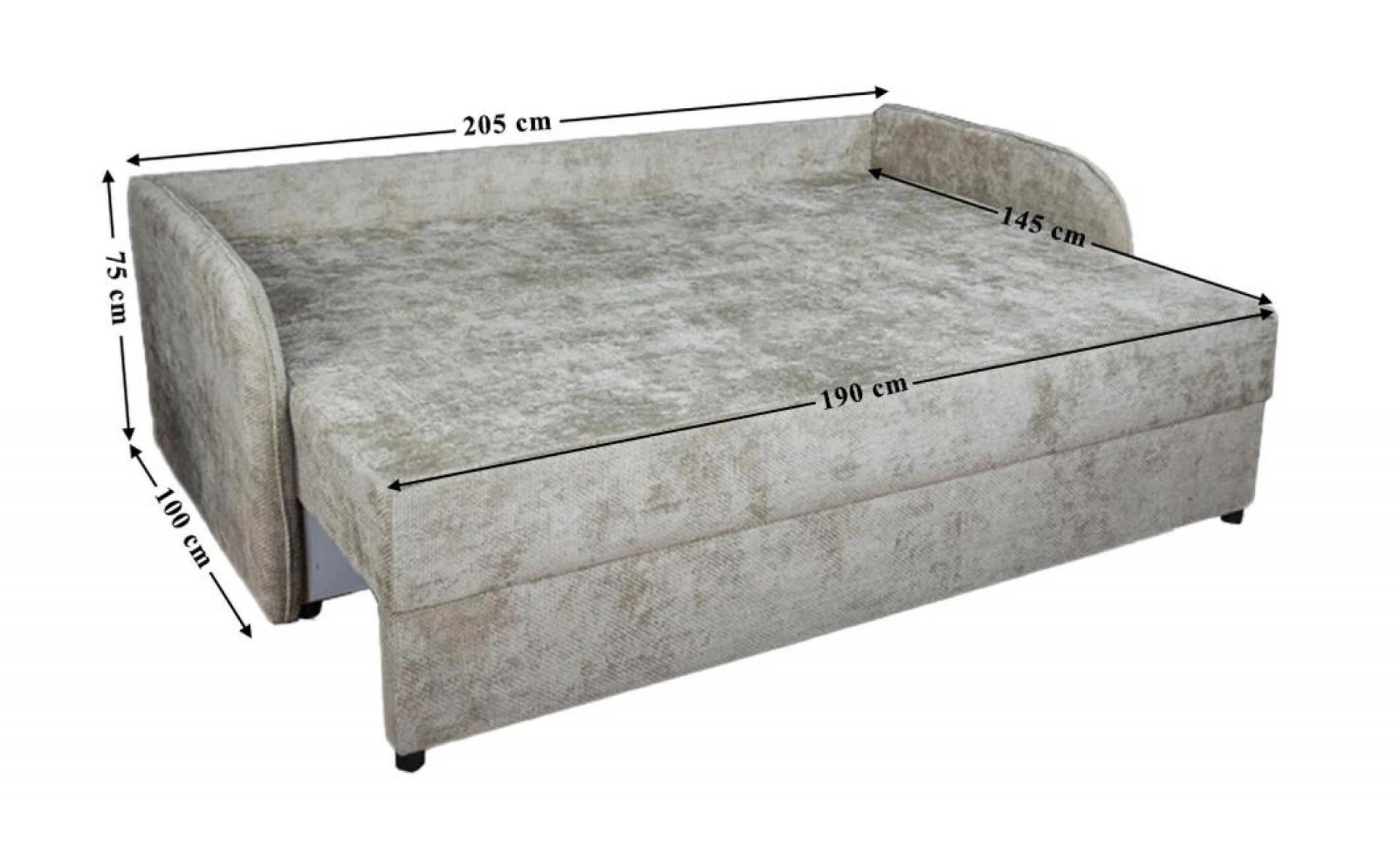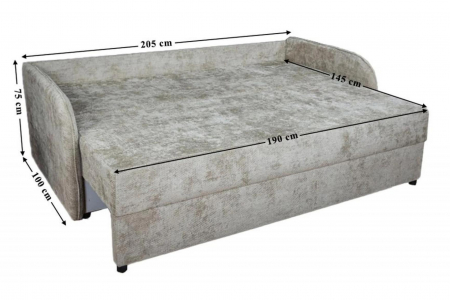 размери: ш/в/д- 205/75/100 см и площ за сън 145/195 см с механиъм падащ гръб.
