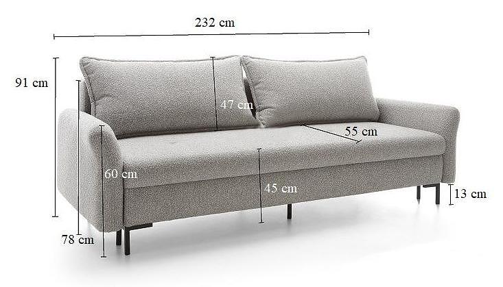 размери: ш/в/д - 232/78-92/ 100 см и площ за сън 147/ 200 см и ракла за съхранение