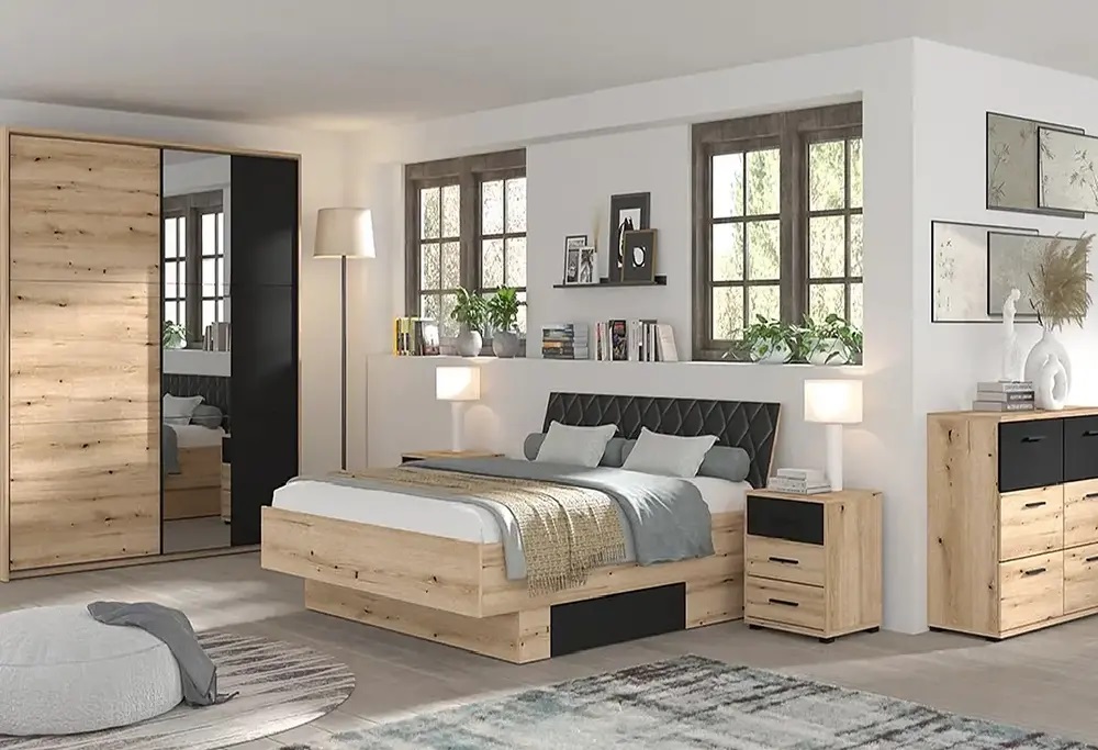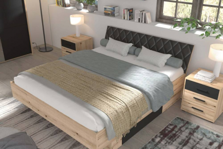легло за матрак 160/200 с тапицирана табла и 2 бр. чекм. - размери: ш/в/д- 164,5/46-90/204 см. - € 299,00 / 584,79 лв