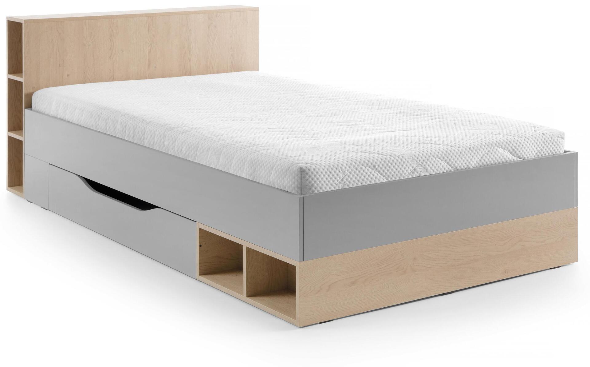 Легло с чекмедже и ниши за матрак с размер 90/200 см с размери: 124/80/224 см с включена подматрачна рамка. Без включен матрак.