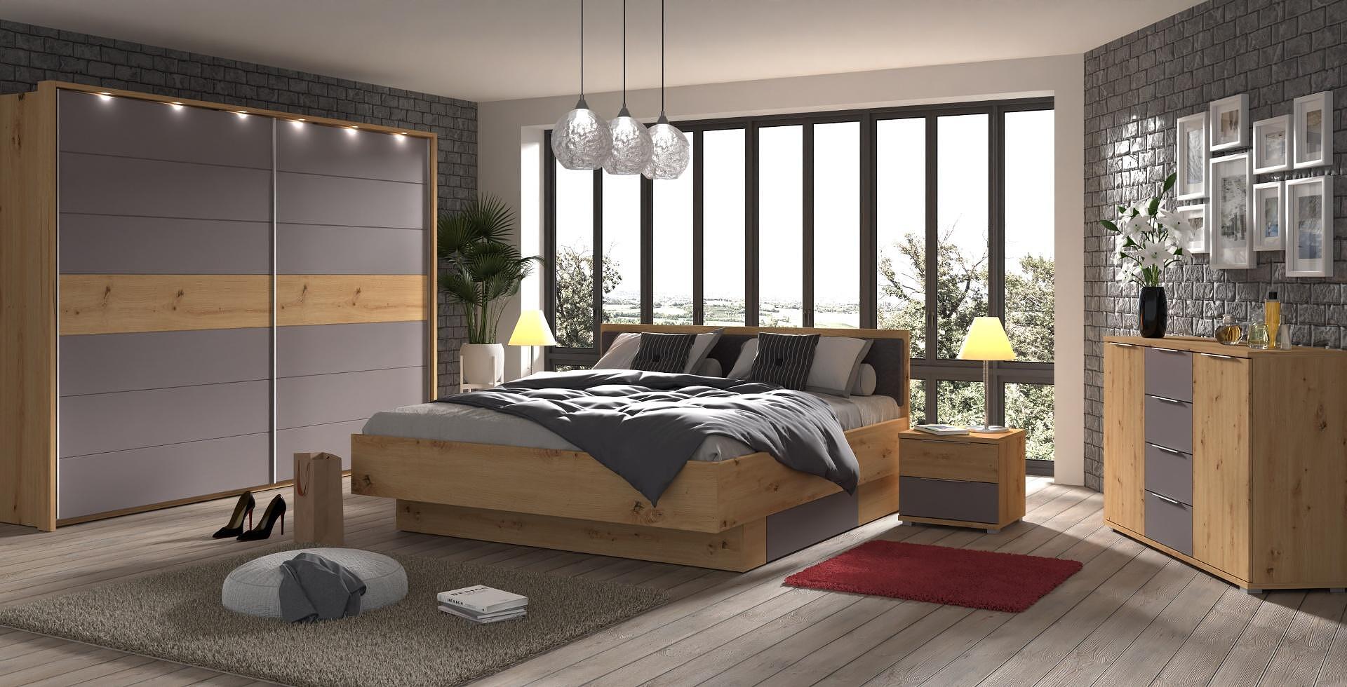 Цената включва гардероб пл.врати + легло за матрак 160/200 с тапицирана табла и 2 бр.чекм. + 2 бр.н.шкафчета